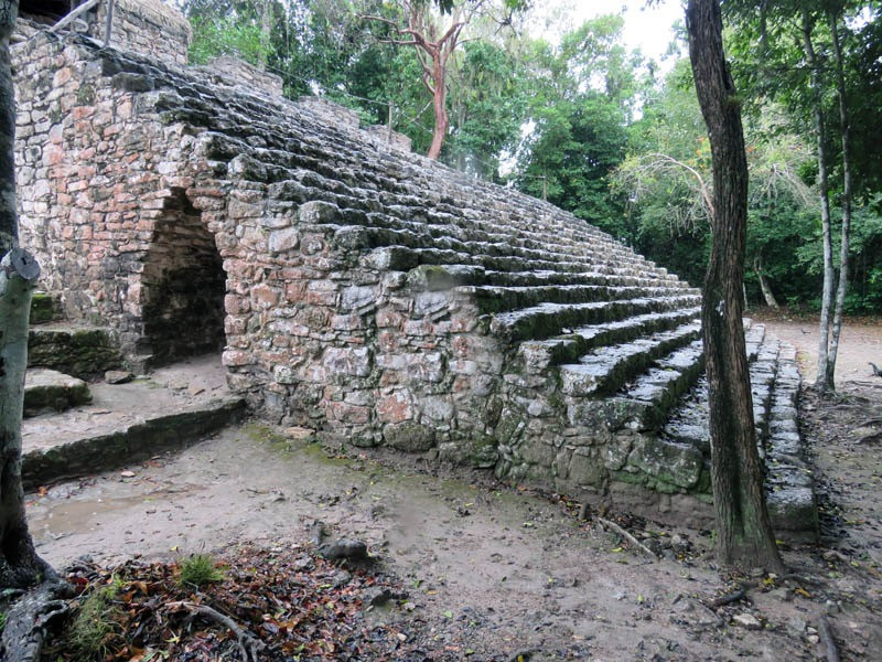 Coba is an ancient Maya city on the Yucatán Peninsula, located in the Mexican state of Quintana Roo. As part of the largest network of stone causeways of the ancient Maya world, Coba contains many engraved and sculpted stelae that document ceremonial life and important events of the Late Classic Period (AD 600–900) of Mesoamerican civilization. The ruins of Coba lie 29 miles northwest of Tulum, also in the State of Quintana Roo. Located around two lagoons, Lake Coba and Lake Macanxoc, a series of elevated stone and plaster roads radiate from the central site to various smaller sites in the area. These roads are known by the Maya as "sacbe" or white road. Coba contains a group of large temple pyramids known as the Nohoch Mul, the tallest, Ixmoja, is 138 ft. in height.