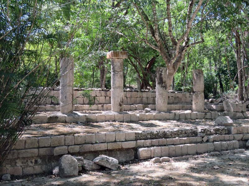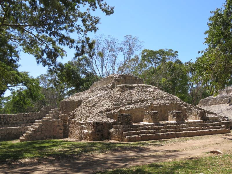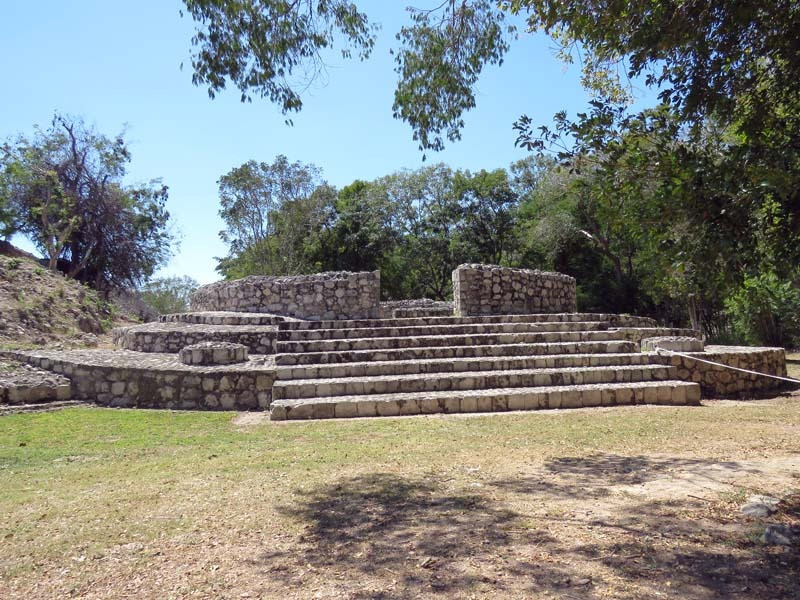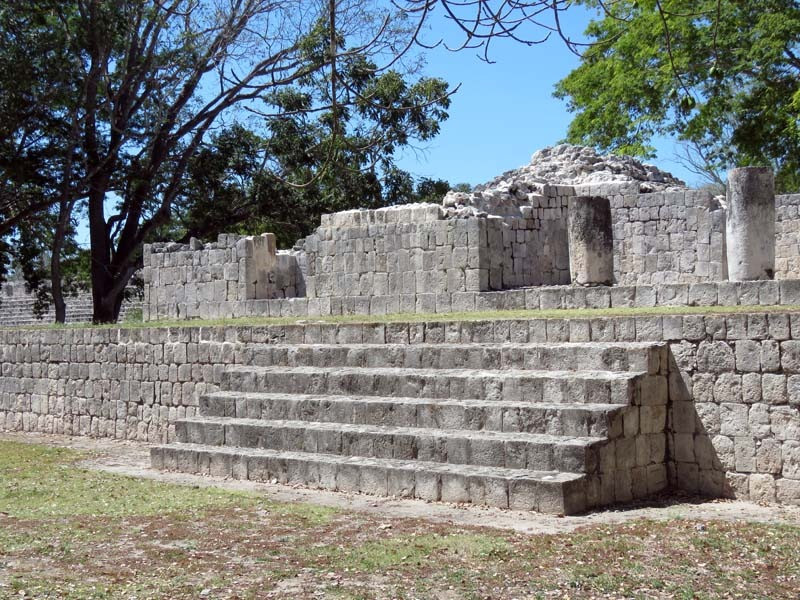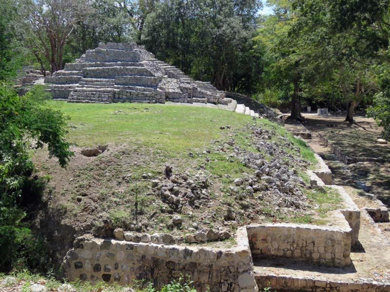 The most remarkable building at the site is the main temple located at the plaza. Built on a platform 40 meters high, it provides a wide overview of the surroundings. Another significant building located in the plaza is a ball court. Two parallel structures make up the ball court. The top rooms of the ball court were possibly used to store images of the gods associated with the events, along with items needed for the games.